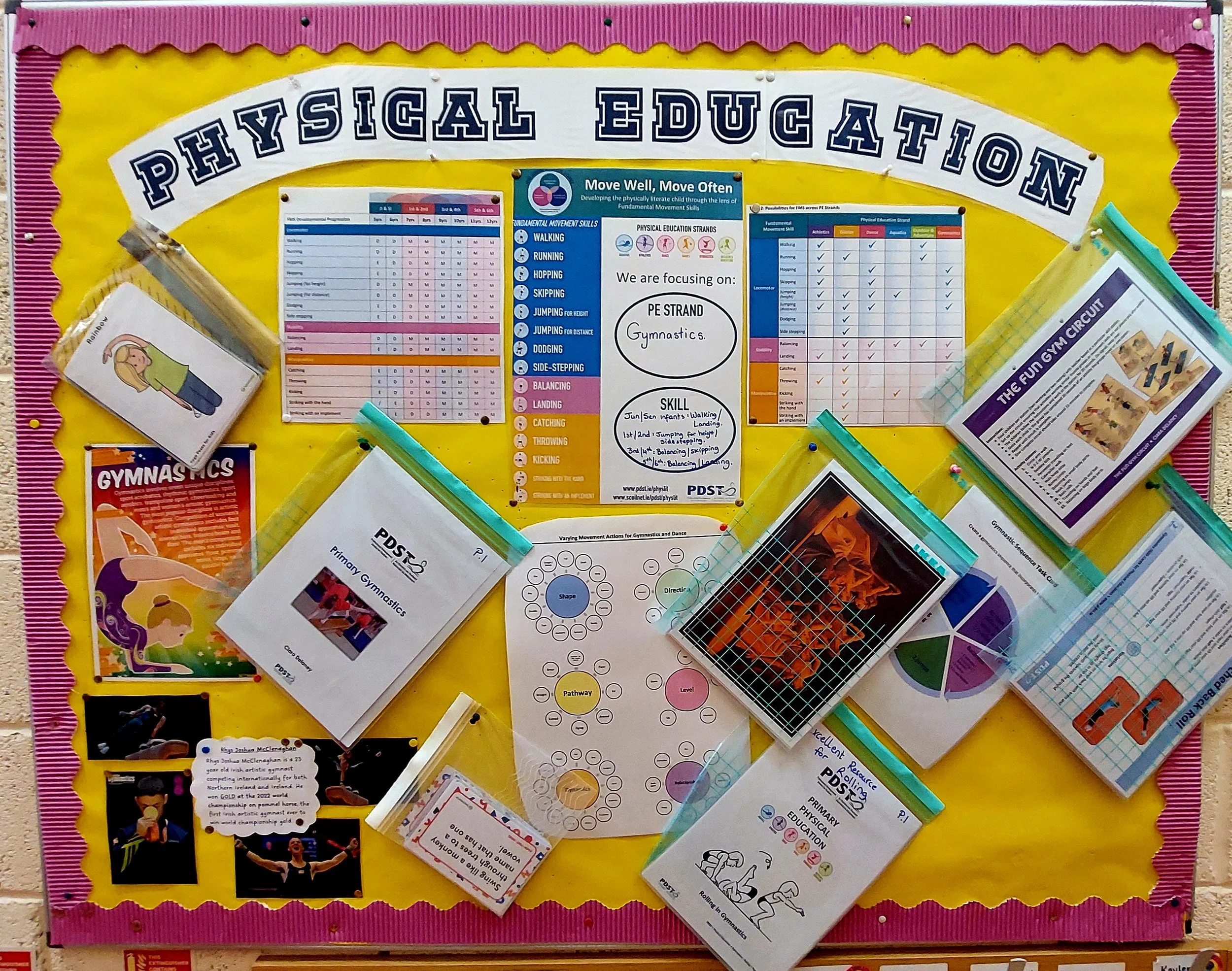 Our new physical Education notice board located just outside the school hall provides all teachers with easy access to lesson ideas, resources and information on the Move Well, Move Often programme.