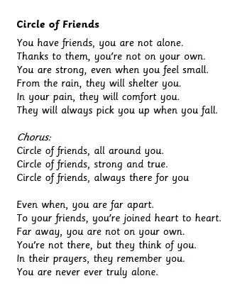 The children in 2nd & 3rd Class are learning the song ‘Circle of Friends’